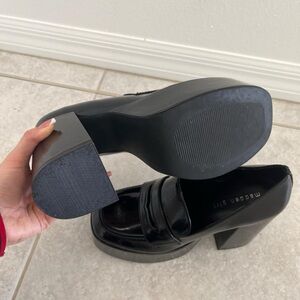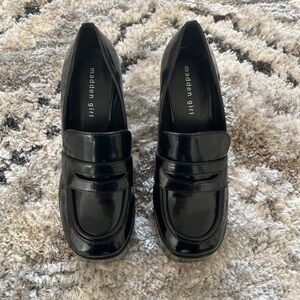 Steve Madden Glossy Black Faux Leather Platform Loafer Heels