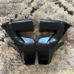 Sleek black platform heels with a glossy finish. Perfect for adding height and style. Size: 10 US WOMENS 4.75” heel 2” platform