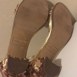 Elevate your style with these exquisite gold heels from Steve Madden, designed to add a touch of glamour to any ensemble. Crafted with precision, these heels offer both comfort and sophistication, making them a perfect choice for special occasions. The sleek silhouette and shimmering finish ensure you stand out with every step.