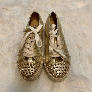 Laces are a little dirty and the are scuff marks on the platform that should be easily removed when cleaned.