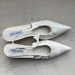 Steve Madden Gracey Bone White Kitten Heel Women 8 Pointy Toe Slingback Ruched