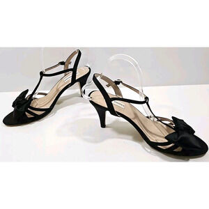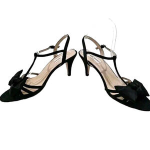 Steve Madden Gramicy Satin Bow Heels T-Strap Black Formal Size 10M FABRIC UPPER