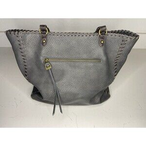 This Steve Madden tote handbag features a stylish blend of boho and western-inspired design. Made with durable textured gray faux leather, the bag is accented with woven diamond patterns, whipstitch edges, and a braided tassel detail. Perfect for everyday use, work, school, or travel.