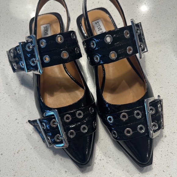Worn once! Steve Madden Graya buckle flats. Black patent. Size 7.5
