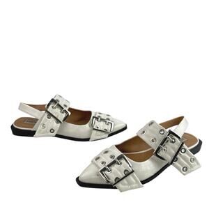 Steve Madden Graya White Patent Leather Studded Pointed Toe Slingback Flats 8