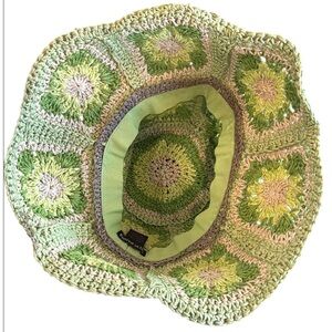 Steve Madden Green Crocheted Paper Yarn Scalloped Brim Bucket Hat OS