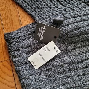STEVE MADDEN Mens Gray Cable-Knit Winter Scarf for women or men, dark grey scarf, stretchy and warm, thick material, knit design, wear it over the head or around your neck. Simple yet stylish to complete your wardrobe. New with tag.