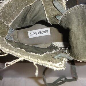 Steve Madden Grunge Distressed Ankle Short Boots , Green canvas Size 6m.