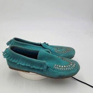 Steve Madden HIPSTER Moccasins Blue Suede Size 7.5B Metal Studs