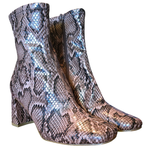 Snake Print Booties Steve Madden Harli 6 M with block style heels in NWOB condition. Side zipper in a beautiful python pattern.