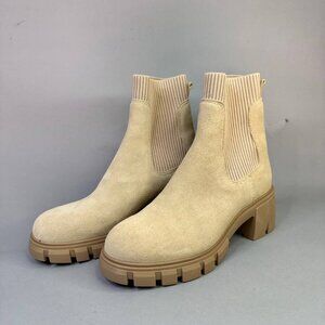 Steve Madden Hayle Chelsea Boots Women’s Size 8.5 Sand Suede Leather Cream Casua