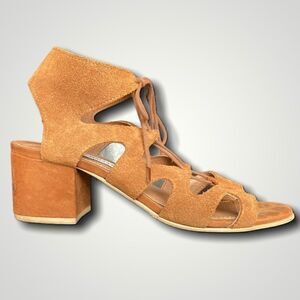 Steve Madden Hayylo Leather Gladiator Low Block Heel Lace Up Cut Out Sandals 8.5