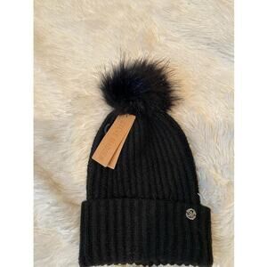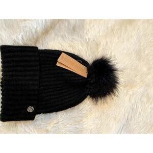 Steve Madden Heathered Rib Knit Black Beanie Hat with Puff - Sz. OS (NWT)