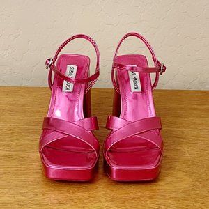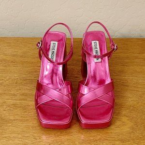 Steve Madden Heels 6 Crazy Pink Metallic Platform Block Heel Sandals Worn Once!