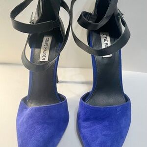 Steve Madden heel size 8. Black & blue . DAPPER Leather upper- PU lining/sock - rubber/plastic outsole - slight damage on heel (see pictures)