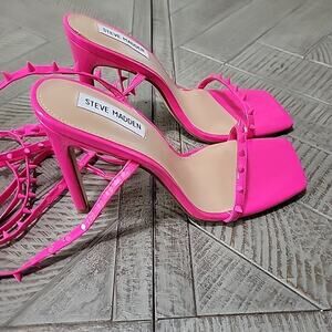 Steve Madden Heels Pink Spiked Stiletto Uplift-S Ankle Wrap