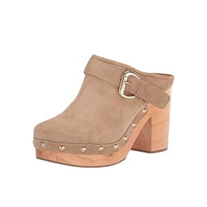 Steve Madden Hilde Taupe Wooden Clog Round Toe Studded Mule Heel Tan Suede 9.5 M
