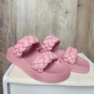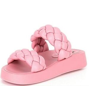 Steve Madden Hillary Pink Slip On Rounded Open Toe Platform Braided Sandal SZ 8