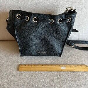 Steve Madden Hobo Bmelisa Shoulder Purse Satch Black Silver Faux Leather Cross Body Bag