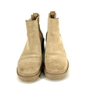 Downtown and uptown sensibilities collide in this bold bootie with a Chelsea silhouette and an exploded lug sole with grunge attitude.