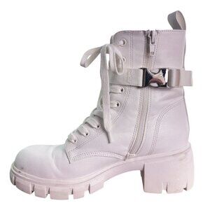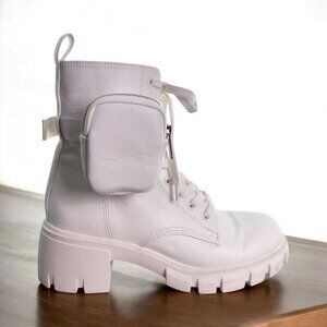 Steve Madden Hyped Chunky Sole Boots in White Micro Ankle Pack Size 6.5