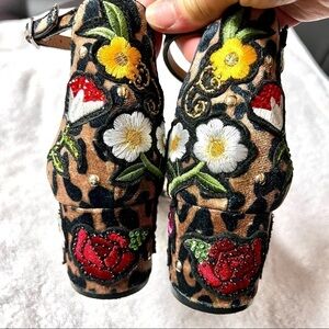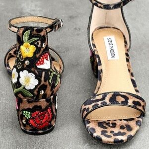 Steve Madden Inca Leopard Multi Embroidered Ankle Strap Heels woman’s size 7.5
