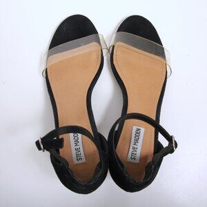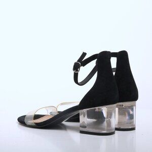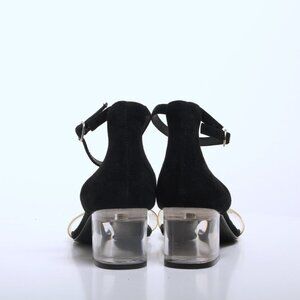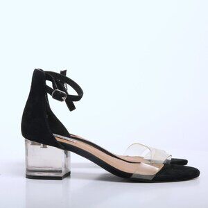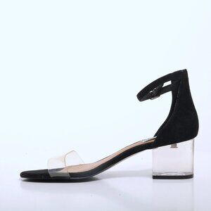 Steve Madden Inspired Leather Ankle Strap Clear Heel Sandal Black Women Size 8.5