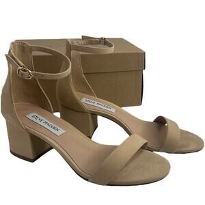Steve Madden Irene Block Heel Sandals Size 6 Nude Tan Suede Ankle Strap Heels