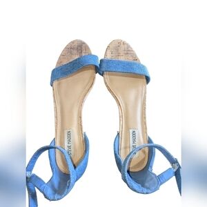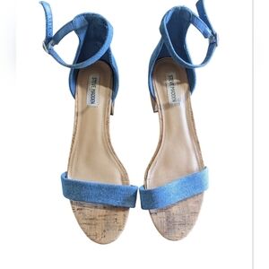 Steve Madden Irenee C Denim Cork Ankle Strap Heels Size 9.5