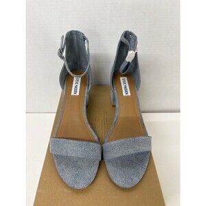 Steve Madden Irenee Denim Round Open Toe Ankle Strap Casual Block Heel Sandal 9M