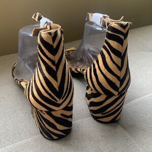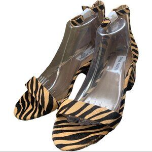 Steve Madden Irenee Sandals Tan Animal Print Cow Hair Low-Block Heel Size 9 Wide