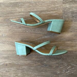 Steve Madden Issy Crock Embossed Block Heel Sandals Mint Green