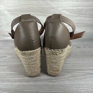 Steve Madden JYIA Espadrille Wedge Sandals Size 10 Brown Suede Leather Peep Toe