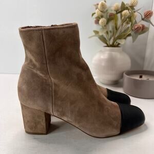 Steve Madden Jaslynn Suede Cap Toe Ankle Booties Taupe Brown