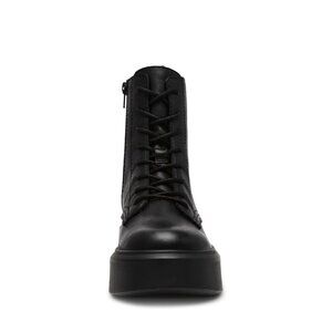 Steve Madden Jazmin Combat Boots Black Leather 6M Lace-Up Block Heel MSRP $129