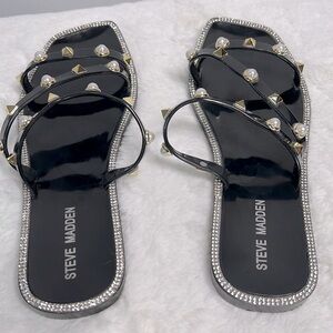 Great pre-owned condition - minor wear, a few rhinestones missing on right toe - see last picture