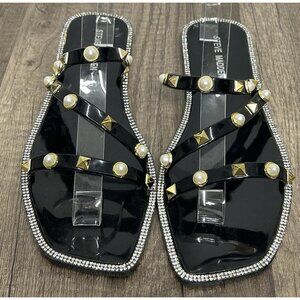 Steve Madden Jellah sandals size 7 Black Rhinestone Pearl Studded Jelly Slide
