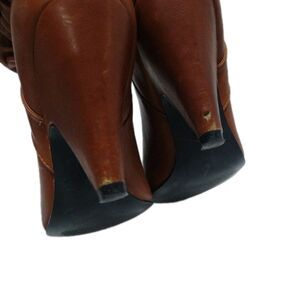 Steve Madden Jess II faux leather Slouch pull-on ankle Boots 3 inch Mid Heels (9" height) - Size 7.5M Burnt Tan/Brown. Retro Boho/Chic style pairs great with a dress, shirt or pants. Leather uppers, all other sections are man made materials. Dark wear to toe box gives a nice worn look. Clean, shoe shined and ready to wear. Heels have a few nicks (see pics).