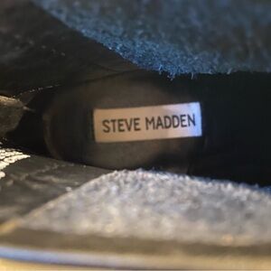 Steve Madden Jillian Black Leather Ankle Boots Booties Block Heel