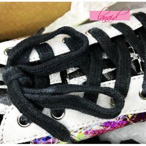 Steve Madden Jparka Sneakers Black Zebra Shiny Iridescent Holographic Mermaid 5