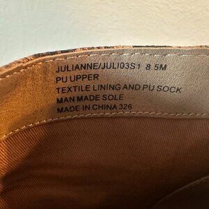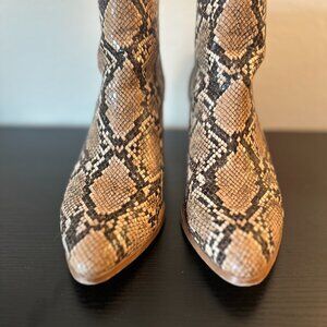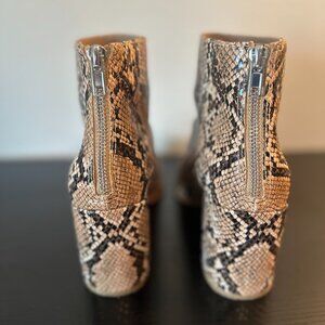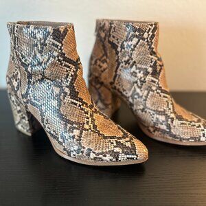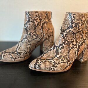 These are adorable! They're a faux snakeskin outter with a wedge heel. Silver zippers up the back. In good condition; only worn a few times.