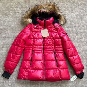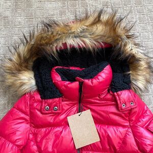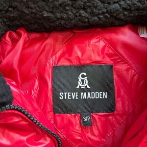 Steve Madden Juniors' Faux-Fur-Trim Hooded Shine Puffer Coat Small Red NWT