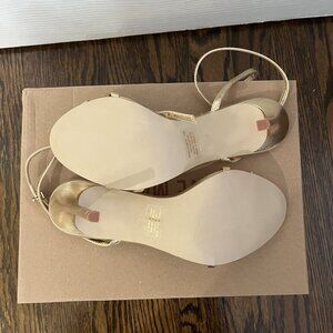 Brand New — Never Worn! Steve Madden Jypsey Strappy Heels in Metallic Gold, Size 8.5.