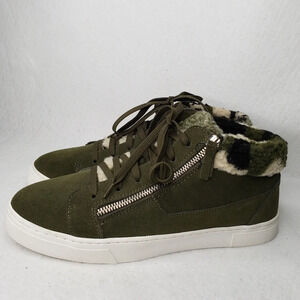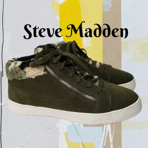 Steve Madden Kameo Green Suede Upper W/Faux Collar Dual Zip/Lace Up Sneaker 11