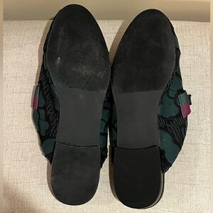 Steve Madden Kandi mules, green, purple & gold, Rose appliqué Loafers, size 9