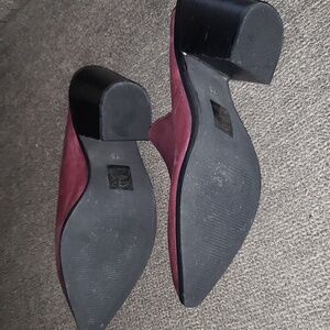Steve Madden Kate mule slides Mulberry. excellent gently worn size 7 1/2. very light marks to the heel as pictured. leather upper is in perfect condition. leather is a darker mulberry then the pictures show. wooden stacked 3" heel.