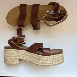 Steve Madden Kelton Brown Leather Platform Sandals Sz 10
