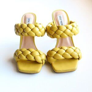 Steve Madden Kenley Yellow Braided Strap High Heel Square Toe Sandals Shoes 6.5