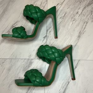 Steve Madden Kenley heeled woven slide sandal shoe green size 7