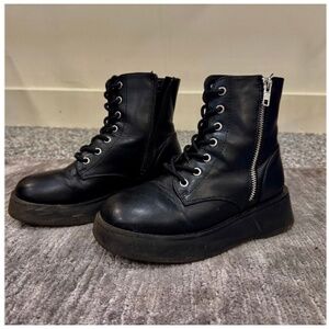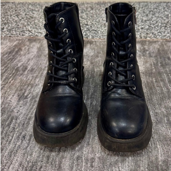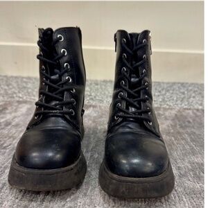 Steve Madden Kids Figaro Combat Boots-Black-Lace-Up-Chunky Sole, Size 3Y